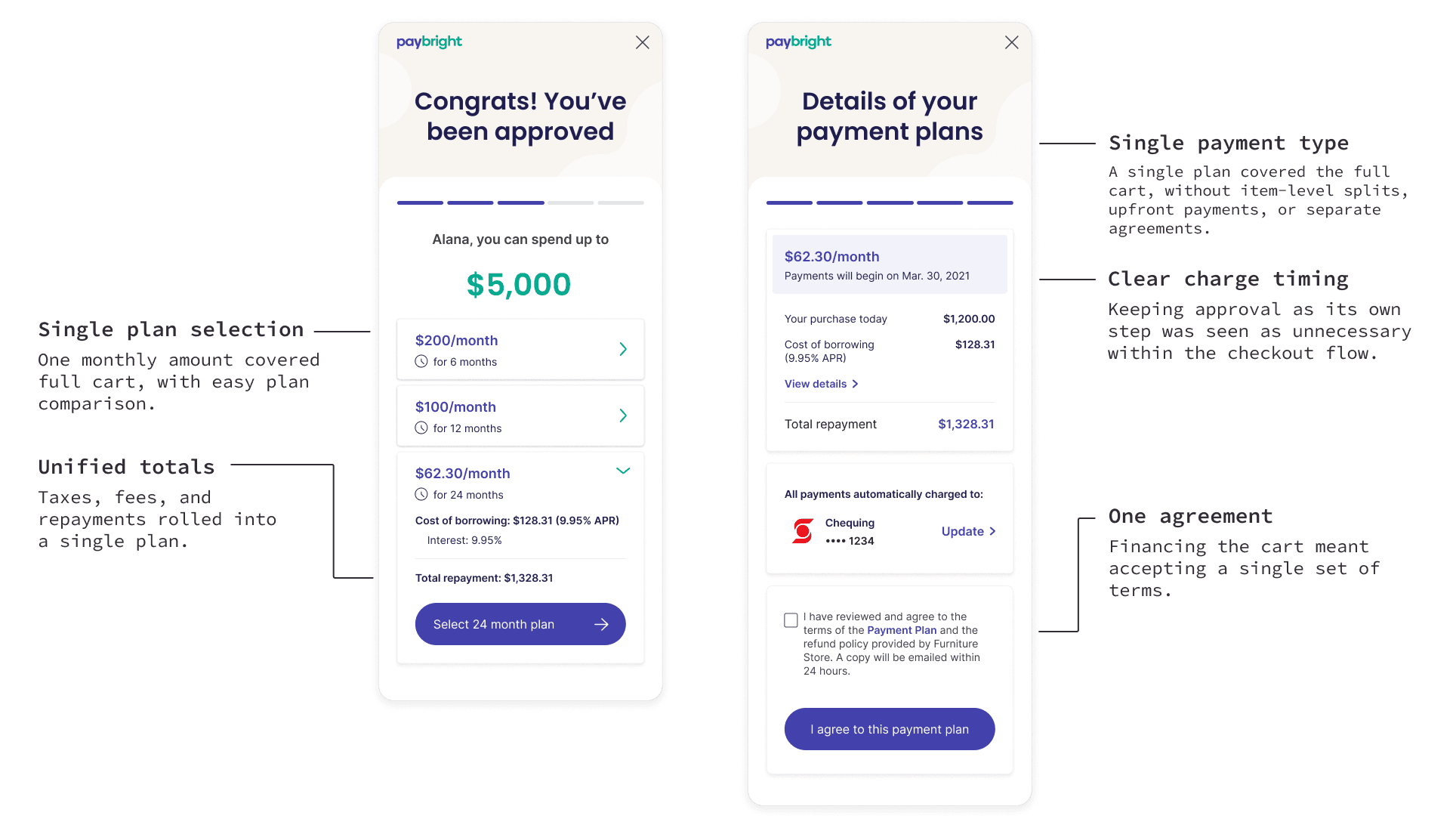 I co-led the overall design and led the in-store experience. My role was to help shape a new payment architecture with Apple’s product team and PayBright engineering while keeping the user experience grounded and trustworthy.